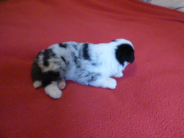Tricolore noir, yeux bleus. Pour compagnie, petit prix car testicules non descendus pour le moment...